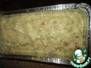 Выложить тесто в форму (у меня была форма 20 х 9см и три формочки для маффинов, но по рецепту было сказано, что это для круглой формы диаметром 20 см и с отверстием посередине)
