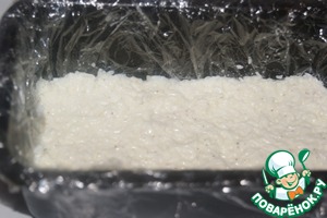 Прямоугольную форму 18х9х7 застелить пленкой.