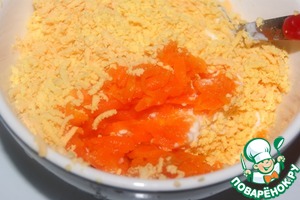Тертую на крупной терке морковь смешать с 3 желтками и 1 ст. л. крем-соуса. Слегка посолить и поперчить.