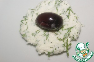 Хорошо размять руками (как пластелин) и расправить в лепешку. внутрь поместить маслину. -