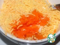 Тертую на крупной терке морковь смешать с 3 желтками и 1 ст. л. крем-соуса. Слегка посолить и поперчить. |
