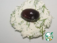 Разделить фета на 6 порций. Хорошо размять руками (как пластелин) и расправить в лепешку. внутрь поместить маслину. |