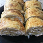 2) Тонкий лаваш нарезаем на полоски шириной 7 см.