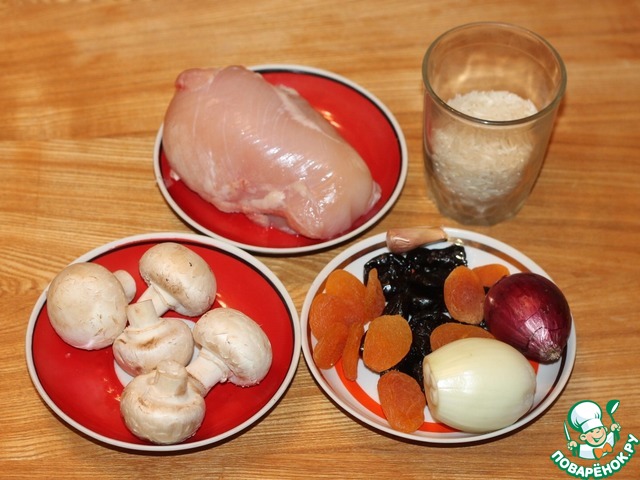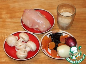 Ингредиенты для «Курица с грибами, рисом и сухофруктами»: