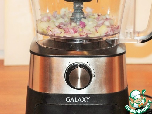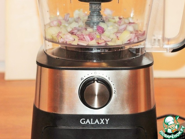 3. Лук нарезаем кубиками и обжариваем на разогретом растительном масле до прозрачности. Лук был измельчен с помощью кухонного комбайна GALAXY GL2300.