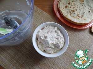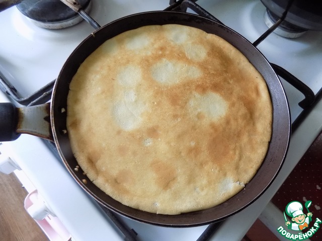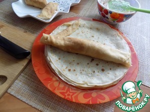 Потратив совсем мало времени, у нас готовы и блины, и начинка.