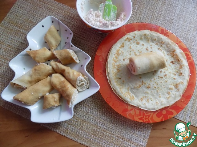 Рецепт «Луковые блины с колбасно-сырной начинкой»: