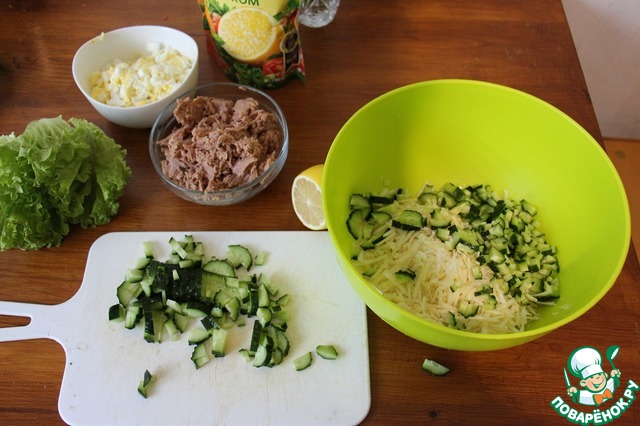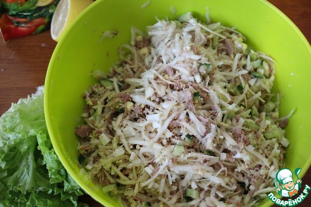 Простой салат с тунцом, яйцом и корнем сельдерея. Очень простой в приготовлении, но одновременно вкусный салатик. На готовку уйдет всего двадцать минут. А еще этот салат хорошо подходит для сэндвичей: на тостовый хлеб положить салатный лист, несколько ложек салата, накрыть салатным листом и ещё одним кусочком тостового хлеба.