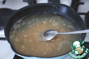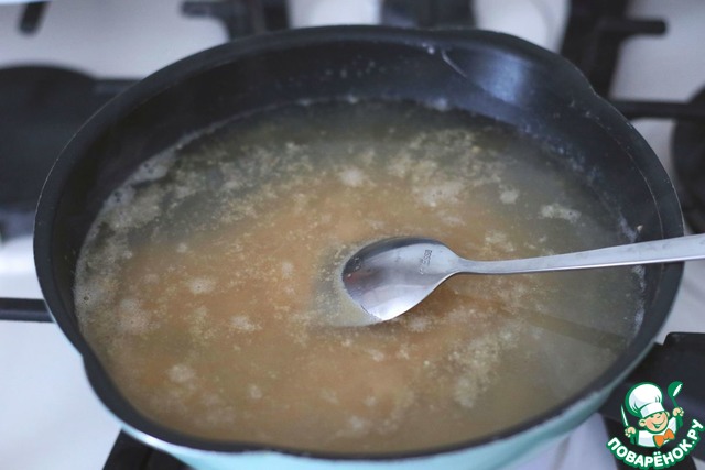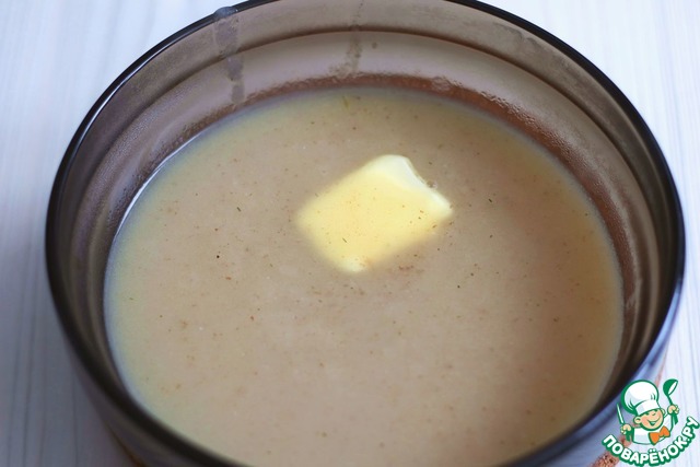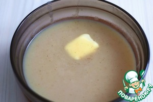 • В горячий соус добавить кусочек сливочного масла (30 гр.), соус еще раз перемешать до расплавления масла.