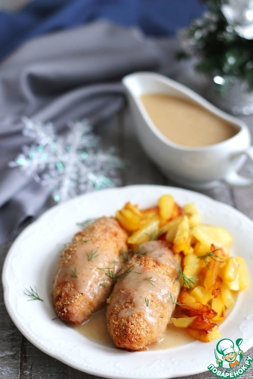 Рецепт «Колбаски из индейки с чесночным соусом»: