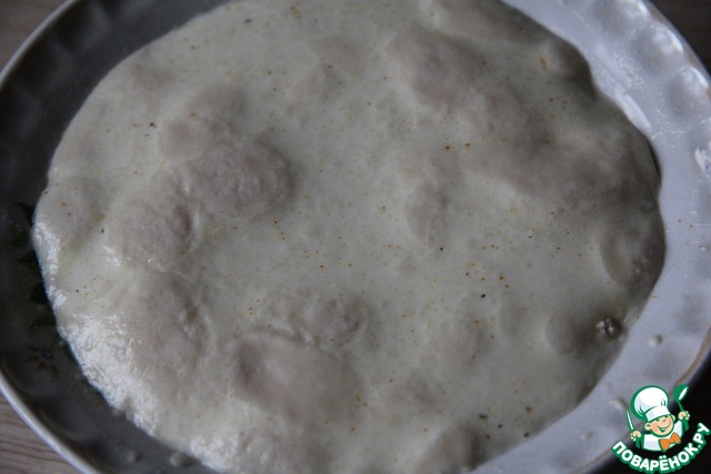 Дрожжи соединить с сахаром, теплым молоком и 1 ст. л. муки, чтобы их активировать. Оставить под крышкой, пока появится пенистая "шапочка".