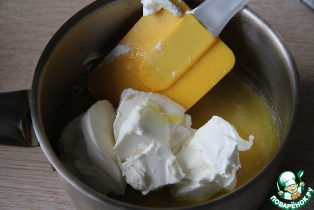 Масло растопить, добавить сливочный творожный сыр (можно обычный жирный творог использовать), соль и специи.