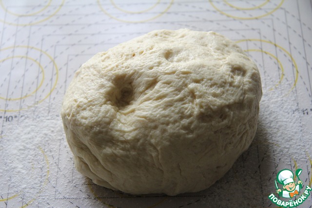 Муку просеять в миску. Из всех компонентов замесить мягкое тесто, постепенно добавляя муку по мере необходимости (можно замес сделать в хлебопечке или с помощью комбайна). Накрыть миску полотенцем и оставить в тепле на час для расстойки.