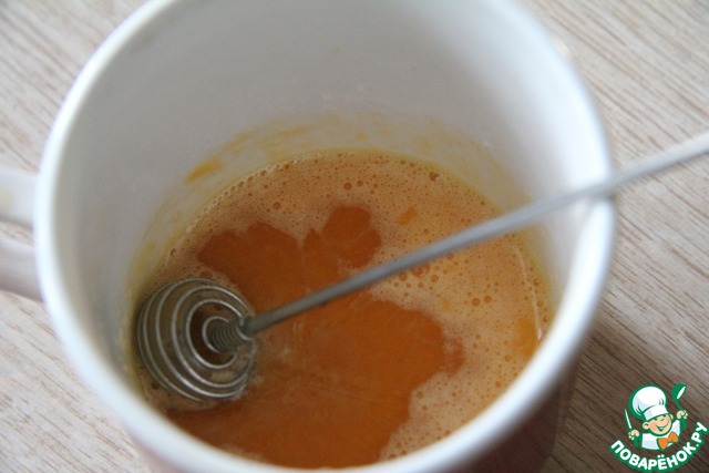 Желток взбить с сахарной пудрой.