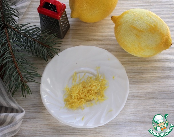 Лимоны вымыть, обсушить, натереть цедру с 2 лимонов.