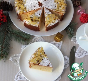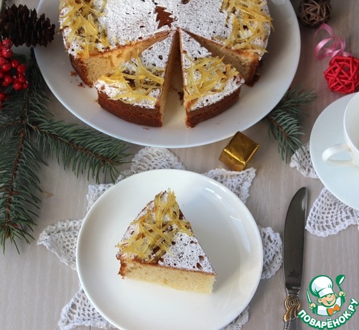 Я готовый пирог присыпала сахарной пудрой и выложила на него цедру.