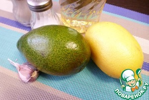 В этом салате изюминка в заправке. Подготовим авокадо, оливковое масло, сок лимона, чеснок, соль и перец по вкусу.
