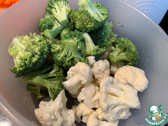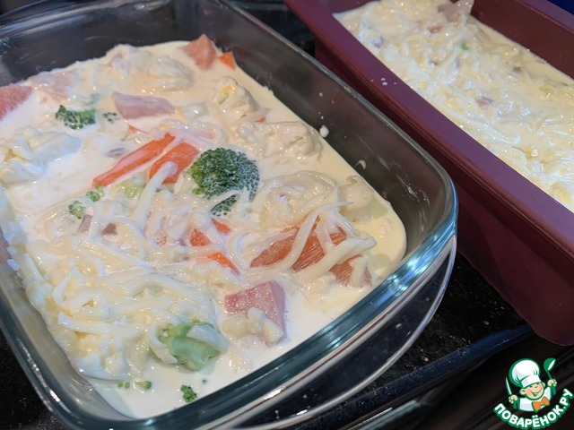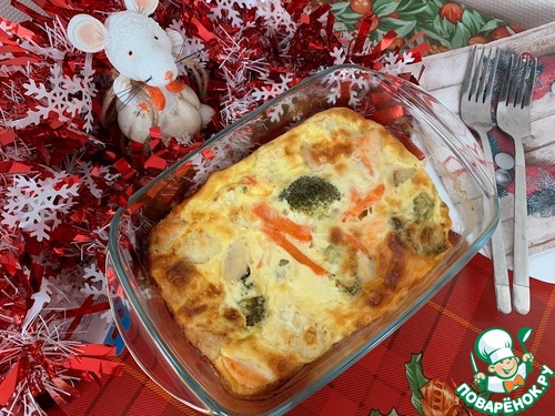 Рецепт «Рыбная запеканка с брокколи и цветной капустой»: