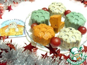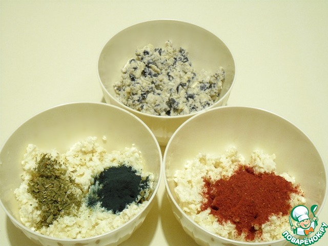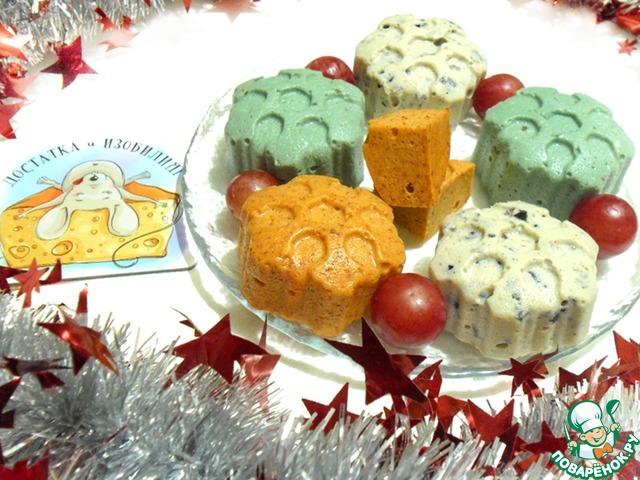 К праздничному столу часто подают сырную нарезку или сырное ассорти. А можно это ассорти сделать ещё и цветным. Раскрашивать можно паприкой, маслинами и спирулиной (говорят она оччччень полезная).