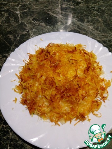 Картофель почистите и натрите тонкой соломкой, - идеально использовать терку для корейской моркови.