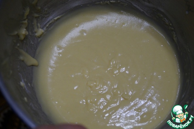 Приготовить штрейзель. В кастрюльку с толстым дном сложить все ингредиенты. Поставить на средний огонь и все время помешивая довести до кипения.