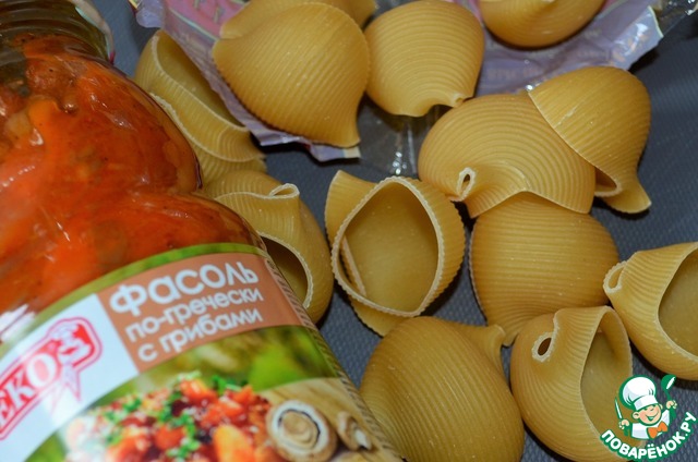 Рецепт «Макаронные рожки с фасолью и грибами»: