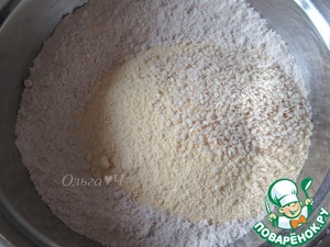 Для тарталеток смешать оба вида муки, кунжут и соль.
