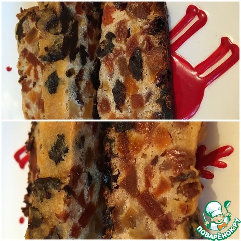 Это непривычный в нашем понимании кекс. Он не должен подниматься и быть высоким, пушистым, легким, воздушным. В составе нет соды и разрыхлителя. Этот кекс получается влажный, тяжелый. По сути, это сухофрукты в небольшом количестве теста. Пряный, ароматный, которого много не съешь!!!