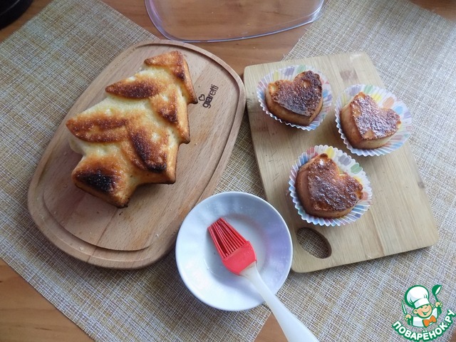 Кисточкой пропитываем верх кексов сиропом. Впитается он очень быстро.