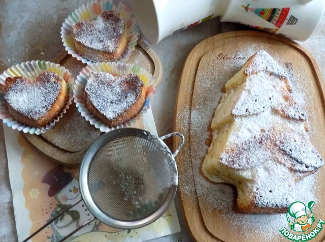 Для подачи присыпаем кексы сахарной пудрой по желанию.