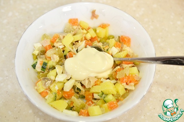 Предлагаю не использовать магазинный майонез, а приготовить домашний вот по этому рецепту.