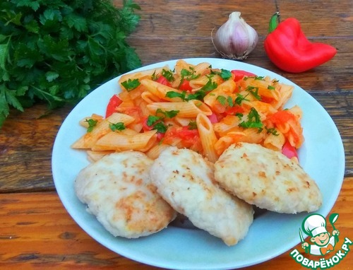 Такие зразы отлично сочетаются с любым гарниром из овощей, макарон или круп. У меня зразы были в этот раз отличной парой к макаронам с томатным соусом и перцем.