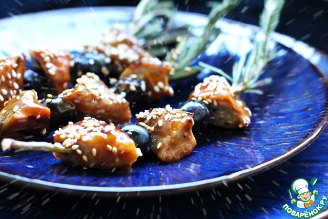 Рецепт «Глазированная утка с виноградом на шпажках»: