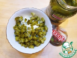 Корнишоны нарезаем и смешиваем с творожной массой.