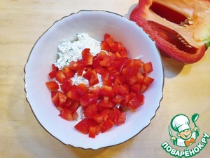 Болгарский перец нарежем небольшим кубиком и также смешаем с творожной массой.