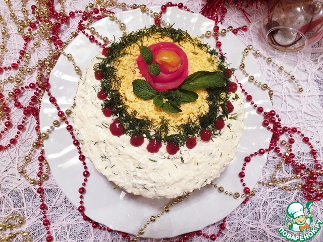 Рецепт «Печеночно-овощной торт "Новогодний"»: