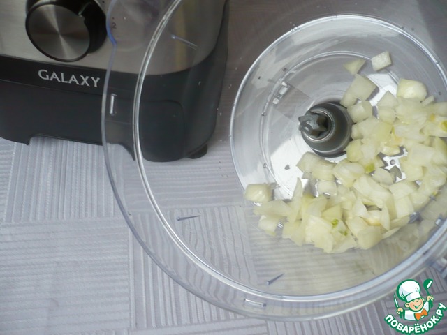 Измельчаем лук кубиками с помощью кухонного комбайна GALAXY GL2300.