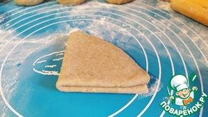 Снова смазать растительным маслом и сложить еще раз пополам. Выпекать подготовленные треугольнички в духовке, при 180 градусах, около 35-40 мин. Остудить и сложить заготовки в пакет, чтобы они не подсохли. Их можно приготовить накануне праздника, а в нужный день просто наполнить начинкой.