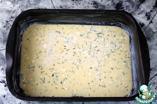 Противень смазать сливочным маслом. Вылить омлет.