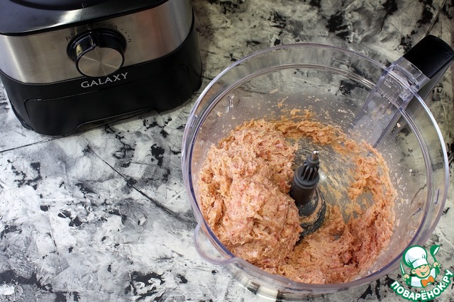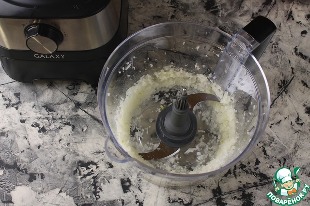 Лук измельчить в комбайне.