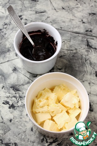 К сливочному маслу, комнатной температуры, добавить еще теплую смесь шоколада и какао.