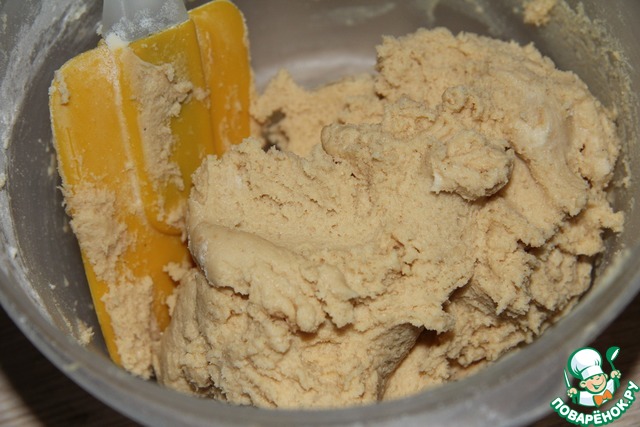 Соединить два вида муки, сухое молоко и соль. Добавить к основной массе и замесить мягкое тесто.