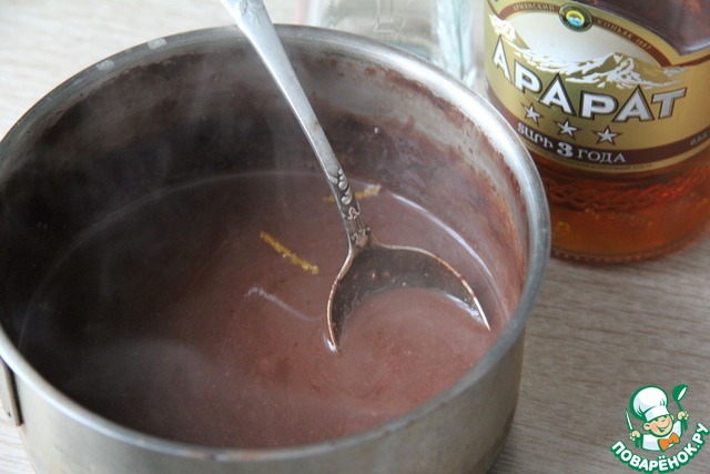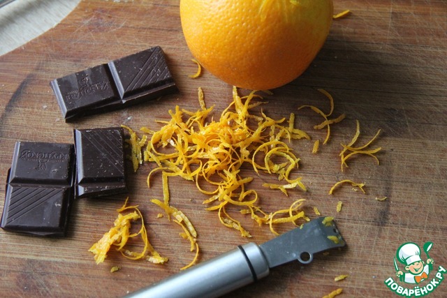 Добавить половину шоколада (вторую часть растопить для украшения), апельсиновую цедру (немного оставить для украшения).