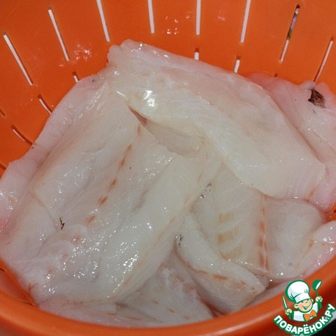 Первым делом надо сделать из макруруса филе. Филе надо поместить в дуршлаг и поставить в холодильник на несколько часов, чтобы с него стекла лишняя жидкость.
