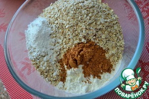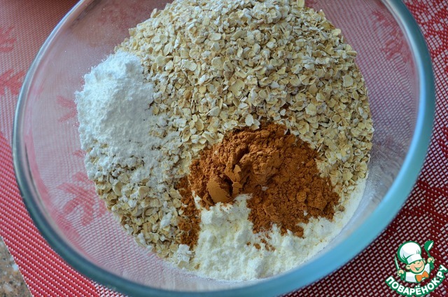 Отдельно смешать муку, хлопья, корицу и разрыхлитель.