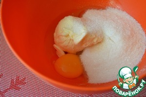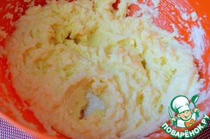 Добавить к масляной массе мучную смесь, шоколад и клюкву.