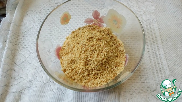 Печенье и орехи измельчаем в измельчителе либо в пакете, прокатывая скалкой.