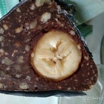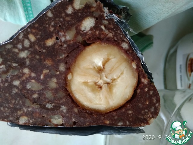 В середине массы делаем небольшое углубление, в которое выкладываем очищенный и разрезанный пополам банан. Дочка попросила положить и киви, поэтому банан я взяла небольшой. -