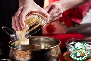 Масло порубить кусочками и высыпать в воду. -