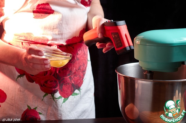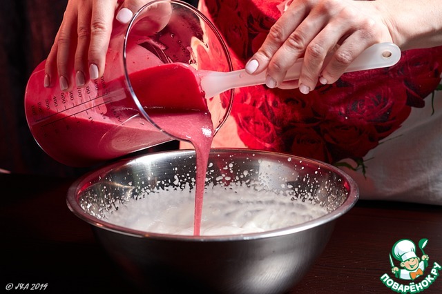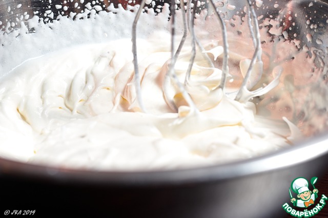 Сливки взбейте до средних пик.